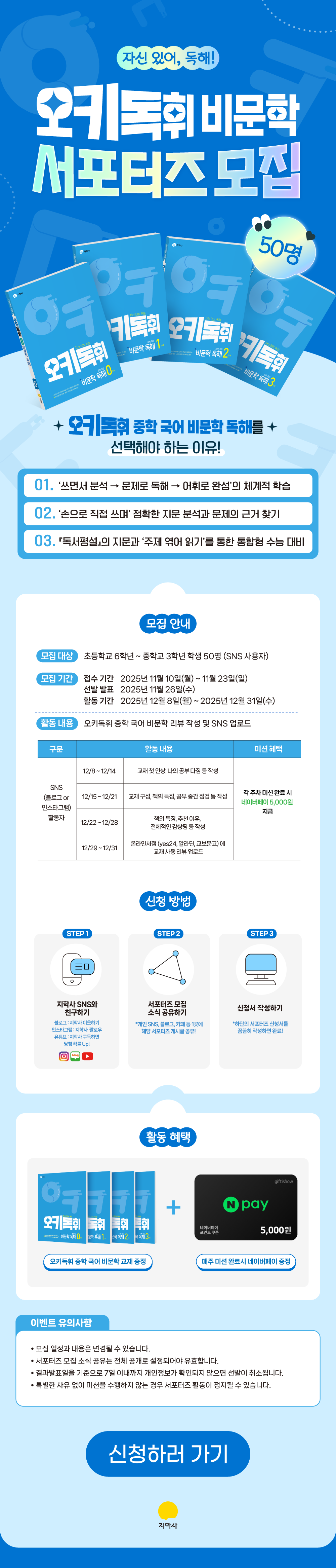 중등 <오키독휘 중학 국어 비문학 서포터즈> 모집! (~11/23)