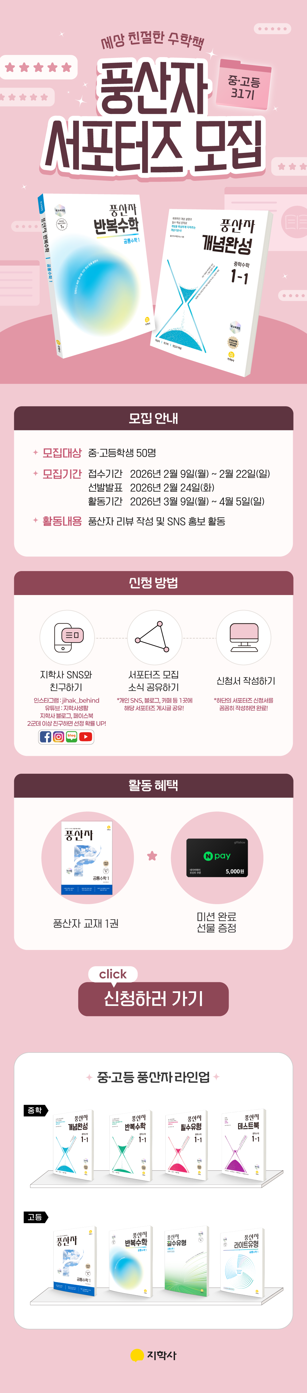 중·고등 <풍산자 수학 서포터즈> 31기 모집!(~2/22)